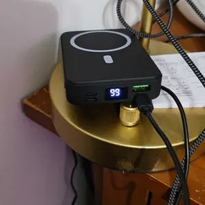 This portable magnetic power bank delivers fast and reliable charging wherever you go. With a powerful 10000mAh battery, strong magnetic alignment, and a built-in foldable stand, it keeps your phone powered while allowing you to watch videos, browse, or work hands-free. The LED digital display shows the remaining battery clearly, making it the perfect charging companion for travel, commuting, and daily use.